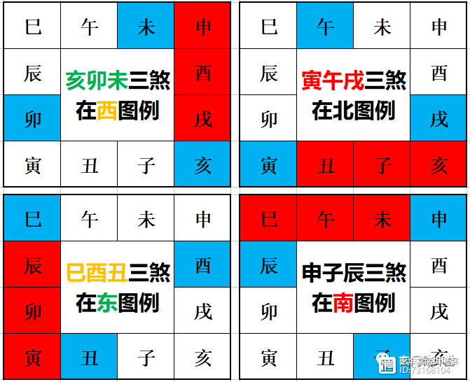 亥卯未三煞在西,占申酉戌三方。