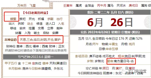 再如上面客户选的日子2022年6月26(阴历五月廿八)