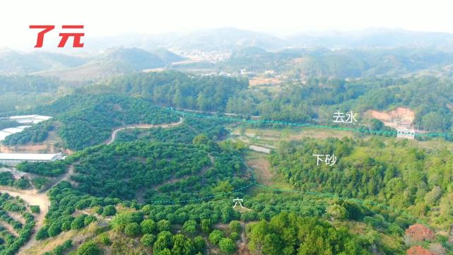 02.无人机于正前方空中看穴星,此为横long结穴,左后方来long,起伏穿帐,后靠大三台山为借乐,双重倚靠,虽为横结,能量却不小。